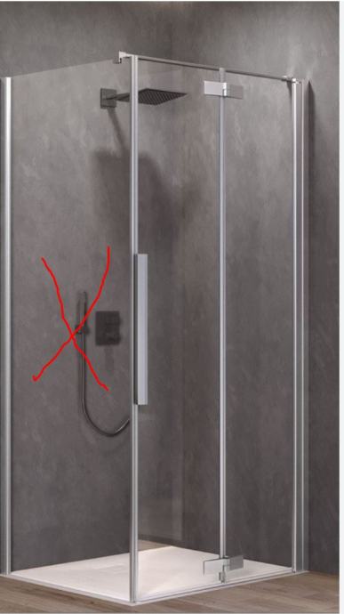 kombinaciji z tuš fiksno steno dolžine 80, 90 , 100 cm. (označeno z rdečim X),ki se naroči po sebaj ločeno.