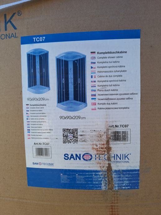 Prodam Sanotechnik kompletno tuš kabino, model TC07. Zapakirana še v originalni embalaži. Mere so 90x90x209cm.