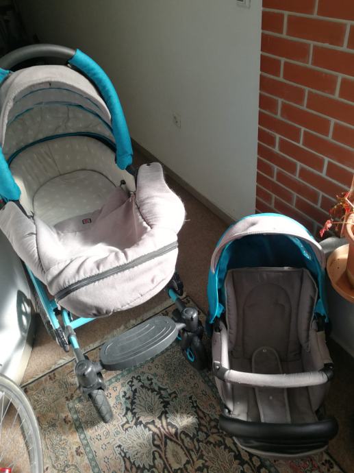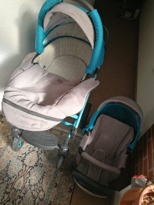 Odličen otroški voziček. Sedež in postelja, Zložljiv. Modre barve.