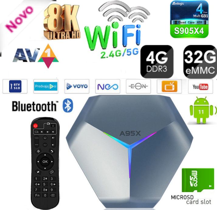 Android 11 box A95XF4 4/32 GB Kodi 21 predvajalnik 8K, AV1 S905X4 RGB