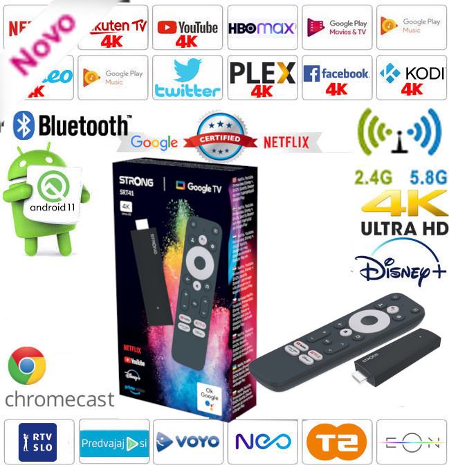 Android ključek 4K Strong Kodi igre T2 EON NEO A1 Voyo MAX Netflix