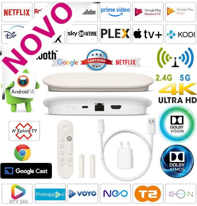 Google TV Streamer 4K je evolucija Chromecasta v zmogljiv namizni "set-top box". Z vgrajenim Gigabitnim mrežnim priklopom, kar 4GB delovnega pomnilnika (prej 1.5GB) in 32GB prostora (prej 8GB) je to končno naprava, ki "leti". Podprti predvajalniki Kodi/Plex delujejo v polni 4K ločljivosti z Dolby Vision in Dolby Atmos podporo.