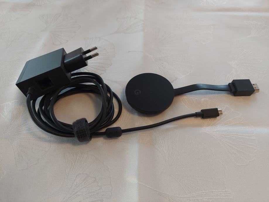 Ugodno originalen Google Chromecast 3. Je edini Google Chromecast, ki omogoča direkteno povezavo preko mrežnega UTP kabla na internet in hkrati tudi Wifi 5G. Predvajanje slike v 4K resoluciji. Deluje odlično in omogoča preslikavo TV programov vseh slovenskih ponudnikov.