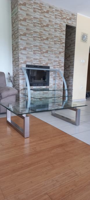 Prodamo TV omarico visokega cenovnega razreda italijanskega proizvajalca ekskluzivne oblike masivne izdelave s kaljenimi steklenimi policami kupljeno v Harvey Normanu. Mere omarice 112 dolžina, 66 širina in 96 cm višina ter širina prostora med lokoma je 100 cm.