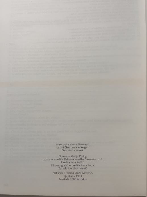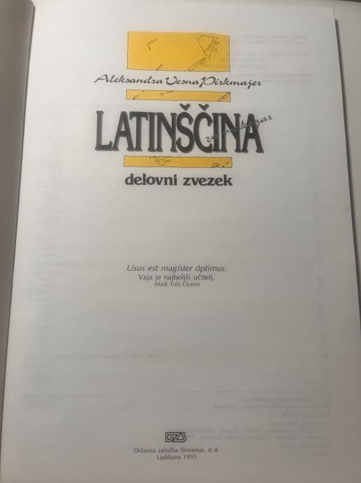 Izdano pri DZS, Ljubljana, 1993. Popolnoma nov, brez zapisanih vaj. Odličen za samostojno učenje latinščine.