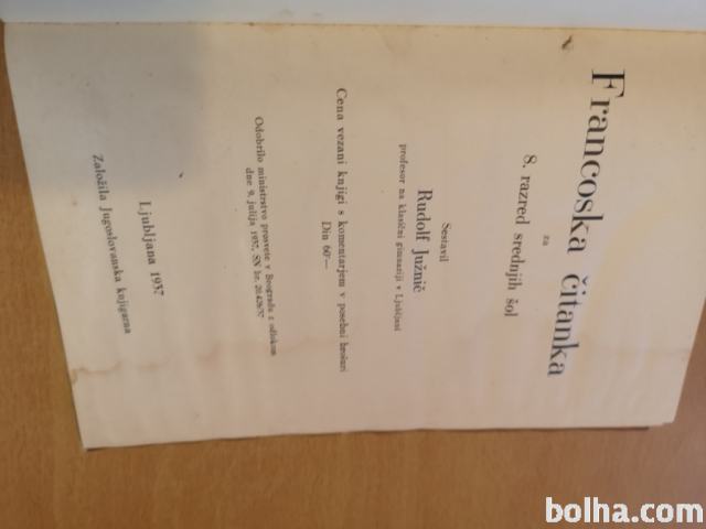 Francoska čitanka za 8. razred srednjih šol - 1937 / francoščina