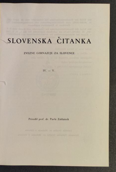 Slovenska čitanka Zvezne gimnazije za Slovence. 4-5 / priredil Pavle Zablatnik