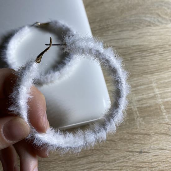 Nikoli nošeni hoops uhani v belem puhu. So dokaj lahke teže, premer pa je cca 6,5cm.