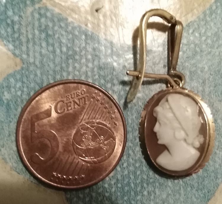Vintage uhani Originalni Cameo, zlato 14 K, 3,5 gr, kot novi, darilo, nikoli nošeni, ker nimam luknj.