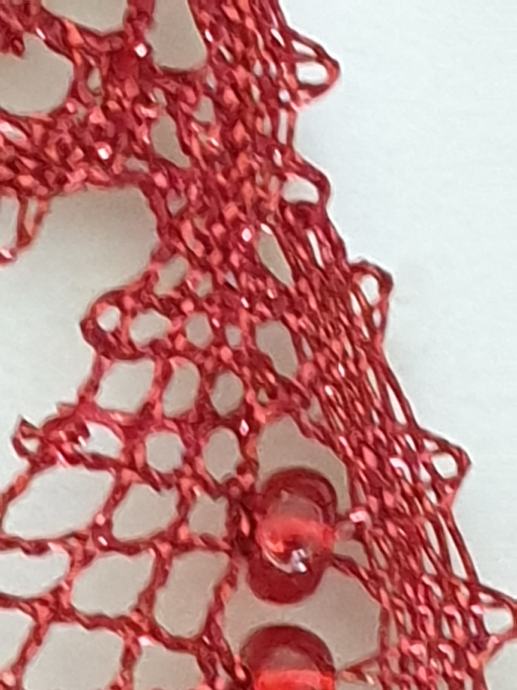 Uhani v darilni škatlici so novi in sodijo v zakladnico idrijske čipkarske umetnosti. Izdelani so iz metaliziranega sukanca v rdeči barvi z dodatnimi perlicami v enaki barvi. Lahko so prekrasno darilo.