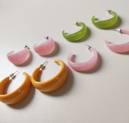 Prodam komplet 4. parov barvitih uhanov v trendovskih pastelnih in živih barvah (roza, zelena, oranžna). Odlični za pomladne in poletne kombinacije. Cena za komplet: 6€, lahko pa tudi posamezno 2,50€ / par. Cena je zadnja. Strošek pošiljanja krije kupec ; 1,40€