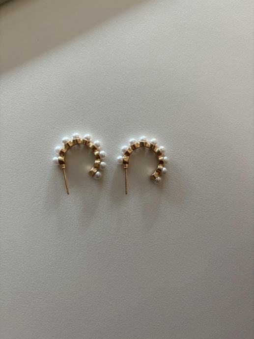 Uhani so okrogli in zlati. Dodane imajo lepe bleščeče kroglice.