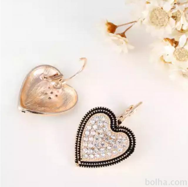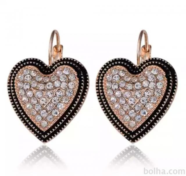 Prodam viseče uhane v obliki srca. Kovina zlate in črne barve, v sredini kristalčki.