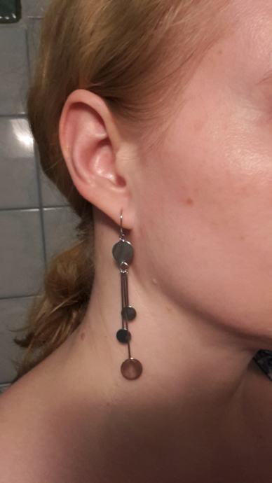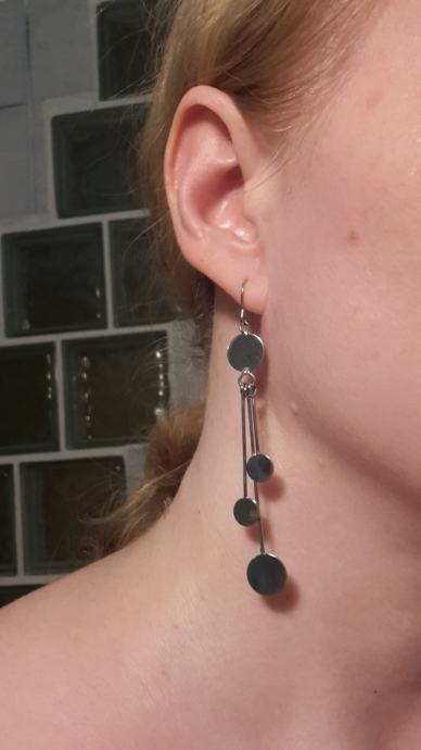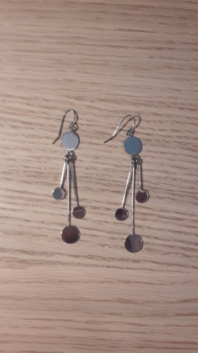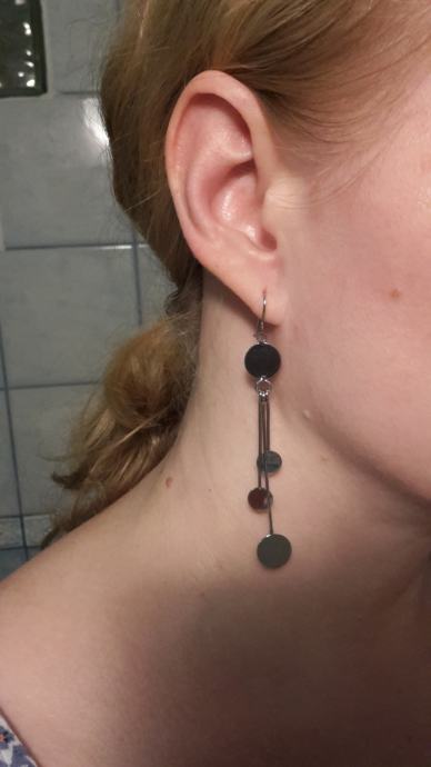 Prodam viseče uhane, dolžina celega uhana je 8cm. Verjetno so iz nerjavečega jekla.