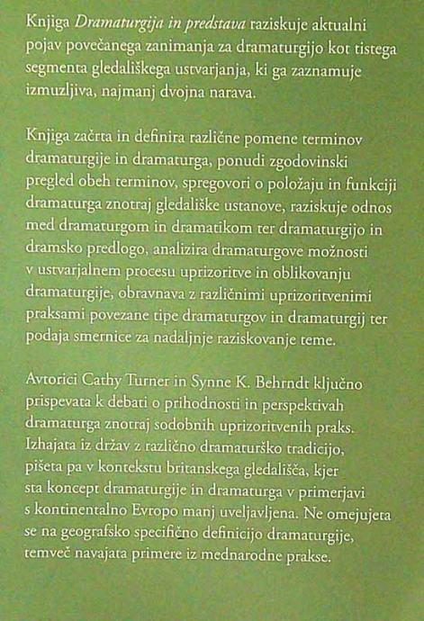 DRAMATURGIJA IN PREDSTAVA, Cathy Turner in Synne K. Behrndt
