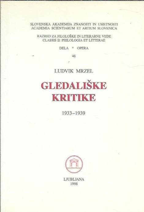 Naslov Gledališke kritike : 1933-1939 / Ludvik Mrzel ; [uredil, uvod in opombe napisal Dušan Moravec]