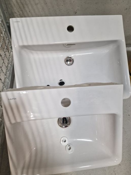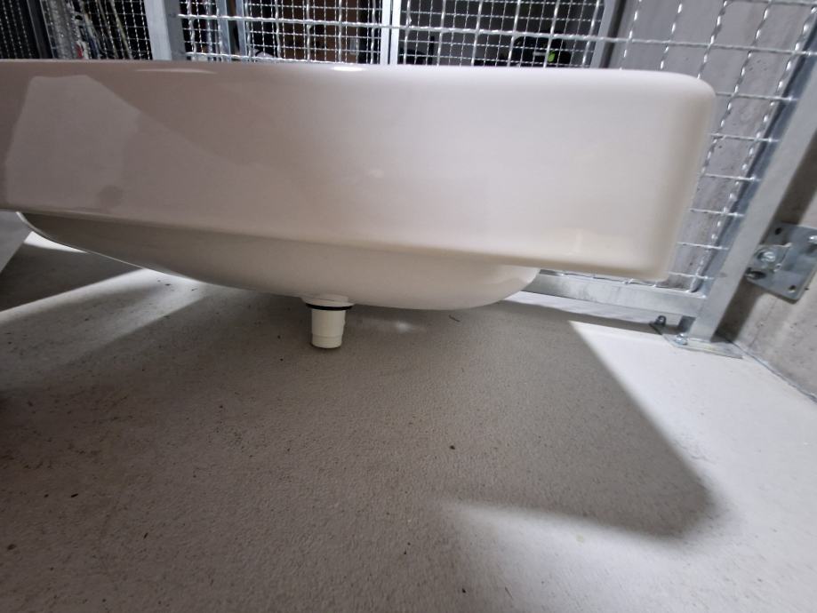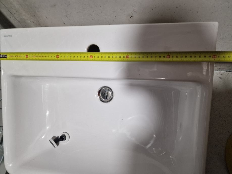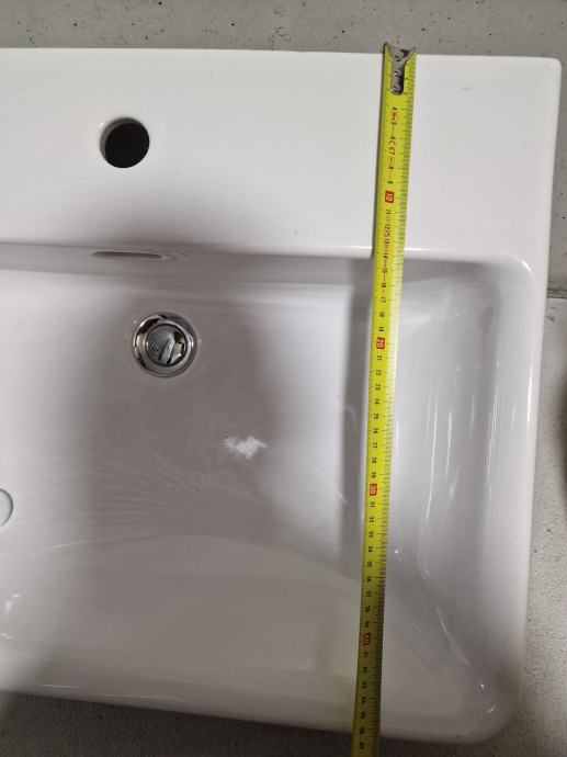 Bel keramični umivalnik dimenzij 60 x 46 cm.