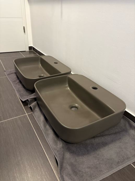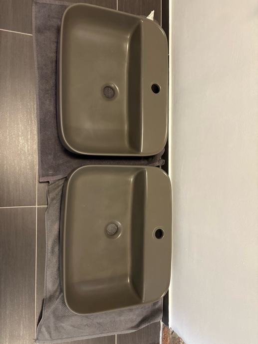 Prodamo dva keramična umivalnika antracit barve. Dimenzija 40x50cm. Globina 10cm.
