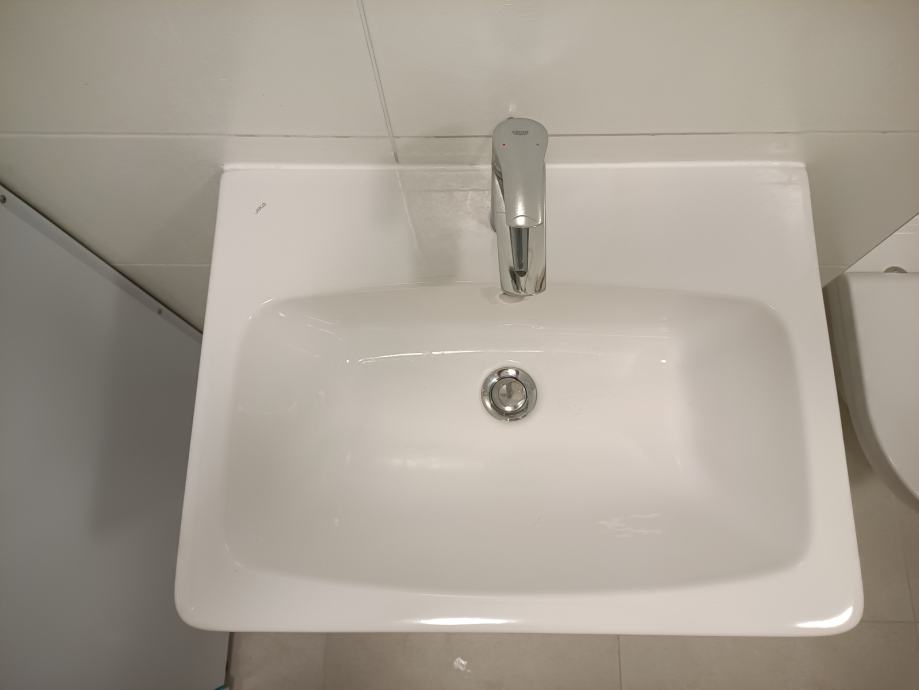 Cena umivalnika brez pipe je 65 EUR, cena kpl. z pipo Grohe je 120 EUR.