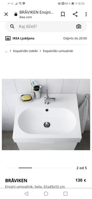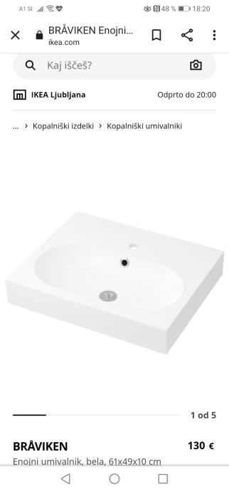 Prodam nerabljen umivalnik IKEA Braviken dimenzije 61x49x10 cm. Kupljen v IKEA Ljubljana. Cena novega je 160 €. Prodam za 105 €. Ogled in prevzem možen v Mariboru.