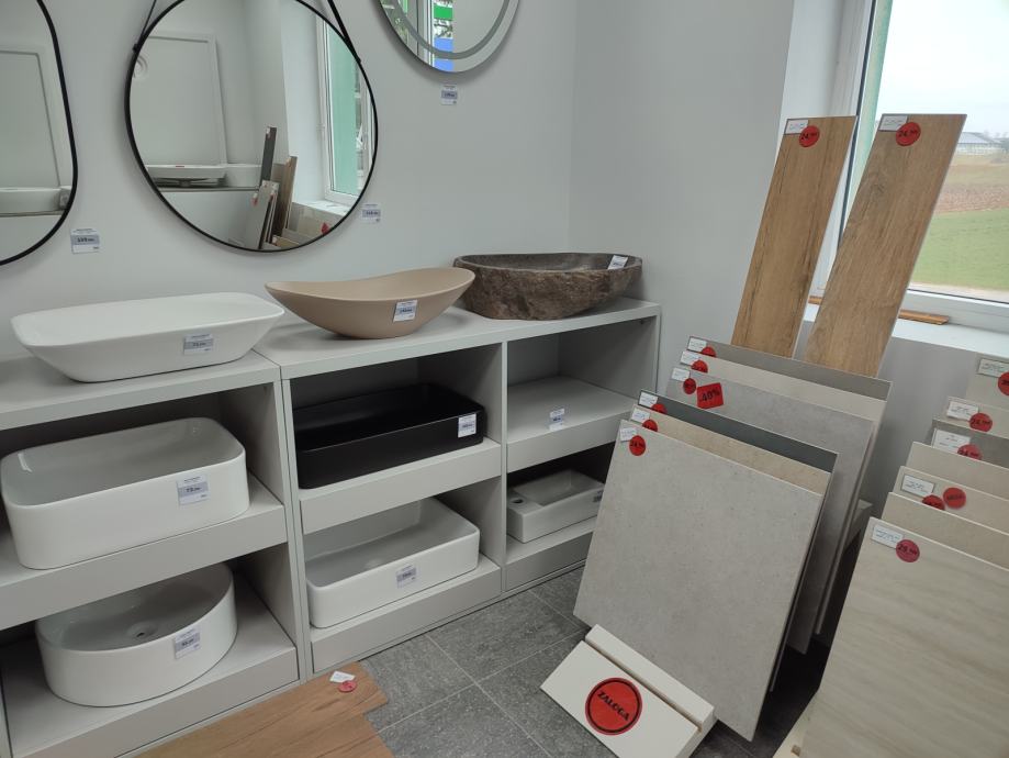Vabljeni v naš salon, kjer Vam poleg ponudbe kopalniške opreme nudimo tudi keramične ploščice, vinilne talne obloge ter opremo za dom in gradnjo.