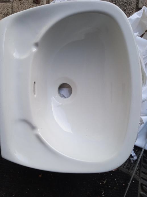 Starejši lijak keramičen, nepoškodovan. Znotraj v beli, zunaj v svetlo zeleni barvi. Velikost 37 x 30 cm.