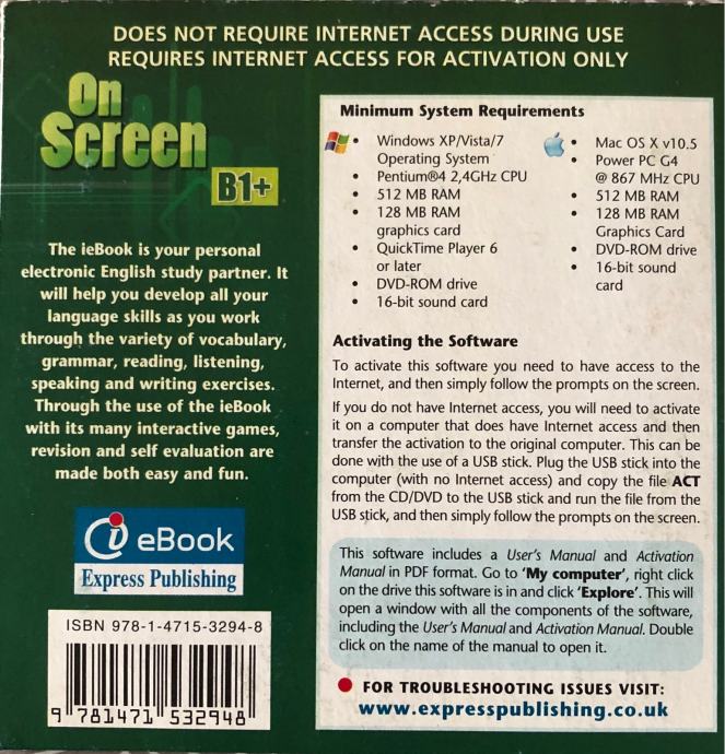 90. ON SCREEN B1+ Student’s book & Writing book & CD eBook (16-18) (18,5)
