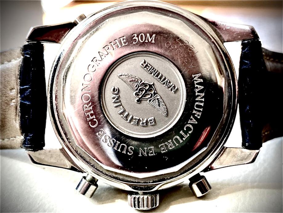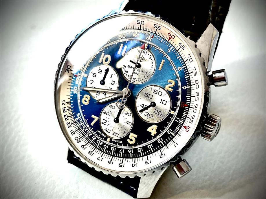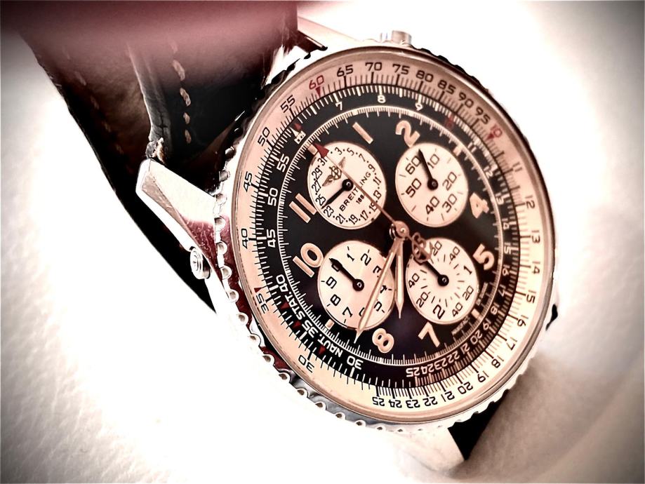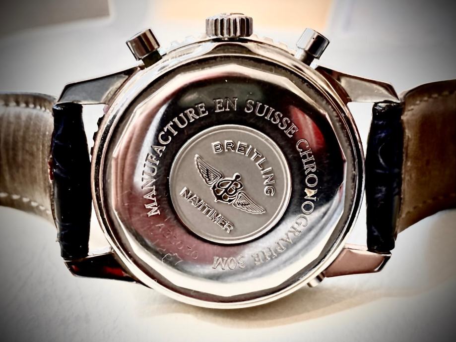 Prodajam Breitling Navitimer A33030, klasični pilotski kronograf z avtomatskim mehanizmom. Gre za model z referenco A33030 in originalno oznako na zadnjem pokrovu “1237”. Ura je bila zelo redko nošena, skrbno hranjena in je v dobrem, lepo ohranjenem stanju.