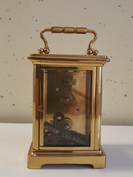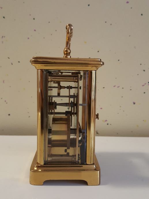 Ohišje je medeninasto, stekla so na robovih brušena (facetirana), emajlirana številčnica je z rimskimi številkami. Emajlirana številčnica je brez poškodb, majhen odkrušek levega stranskega stekla v levem spodnjem delu.