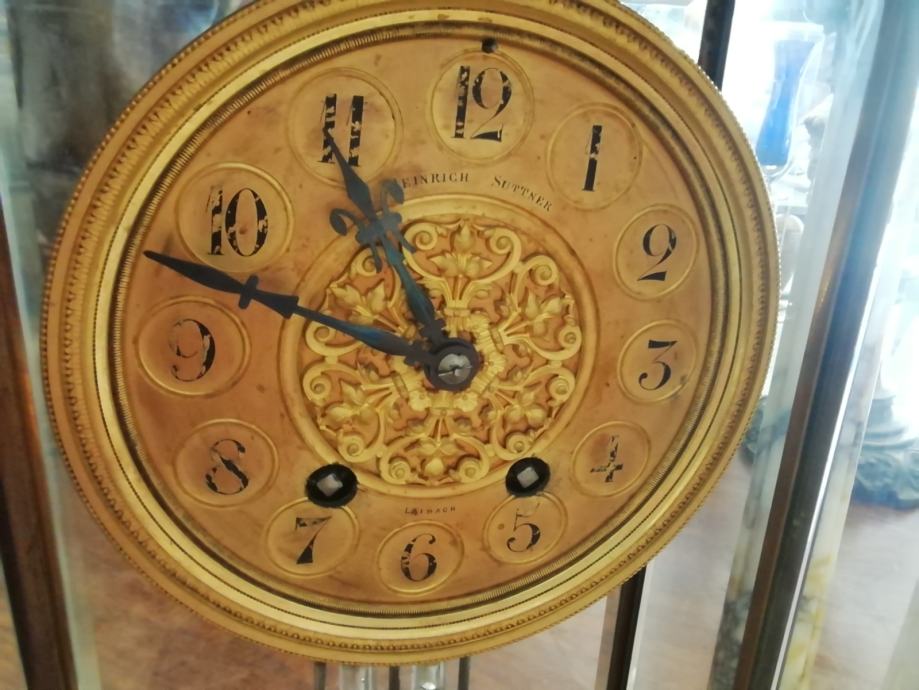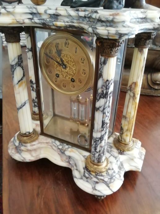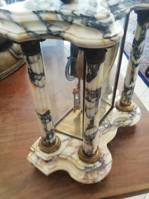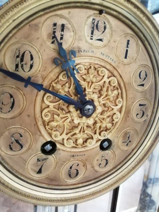 KAMINSKA URA, stara, iz marmorja in brona, (napis:Heinrich Suttner, Laibach), orig, brušena stekla, kljuc,zelo lepo ohranjena, dol. 45cm,vis.62cm,prodam.tel.070/271-607.