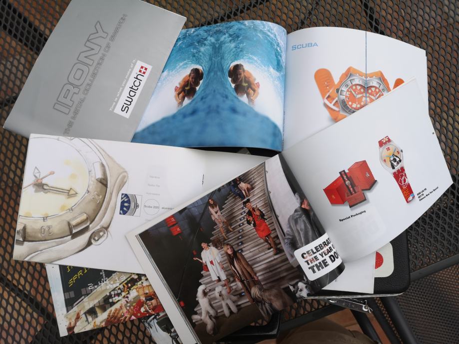 Več katalogov za ure Swatch od let 1997 do 2013. Naprodaj kot celota.
