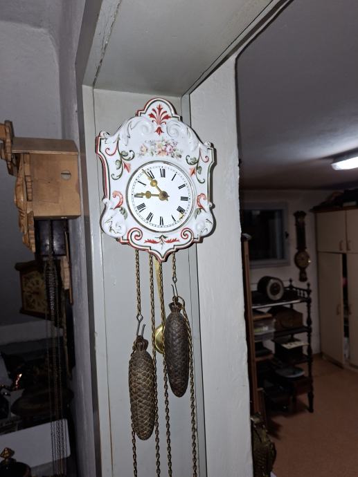 Prodam vec starih stenskih ur na dve utezi,kratko nihalo,stevilcnica keramicna,madzarskega izvora iz casa cca 1900,vse so kompletne,v delujocem stanju,tecenje kot bitje,cena 120e po uri,dosegliv na tel.041.275.467 obmocje laskega.