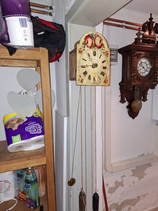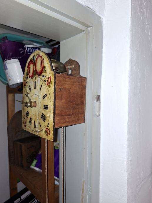 Prodam vecjo starinsko leseno uro na dve utezi in proti utezi,belgijskega izvora,starost se pred 1900, vrvi se navijajo na debele valje, ura deluje ba vrhu velik zvoncek za bitje cele in pol ure,cena 170,dosegliv ba tel.041.275.467 obmocje celja.