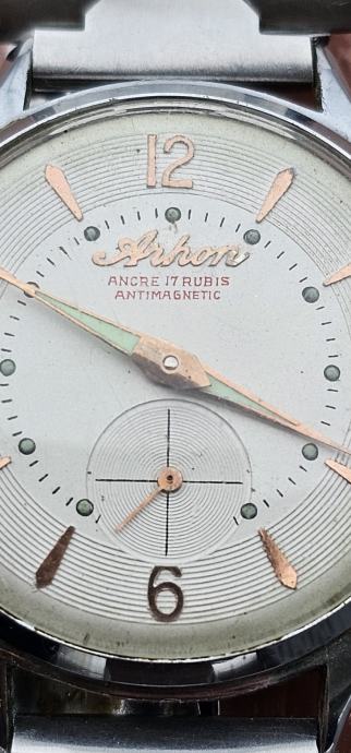 Prodam klasično vintage ročno uro Arhon iz približno 50.-60. let prejšnjega ročno navijanje (17 rubinov) antimagnetna Ura ni v delujočem stanju
