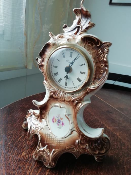 Retro stoječa ura Quartz, porcelan s poslikavo (žig), na štirih nogicah, vel.22x12,5x 31 cm,