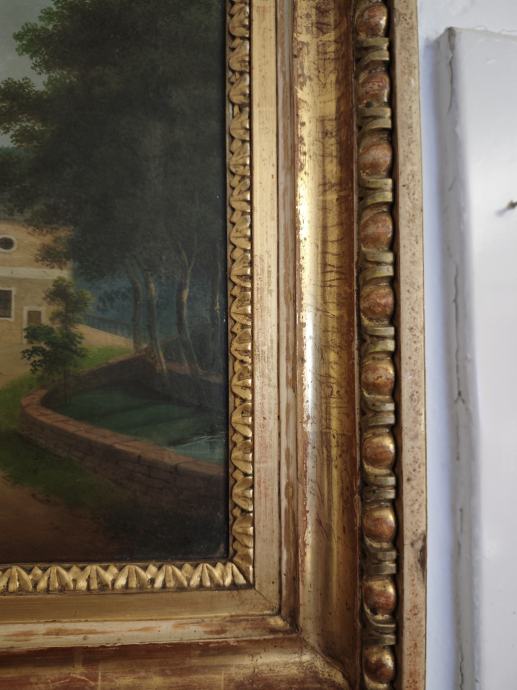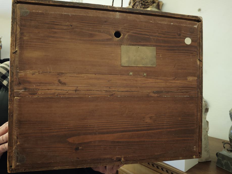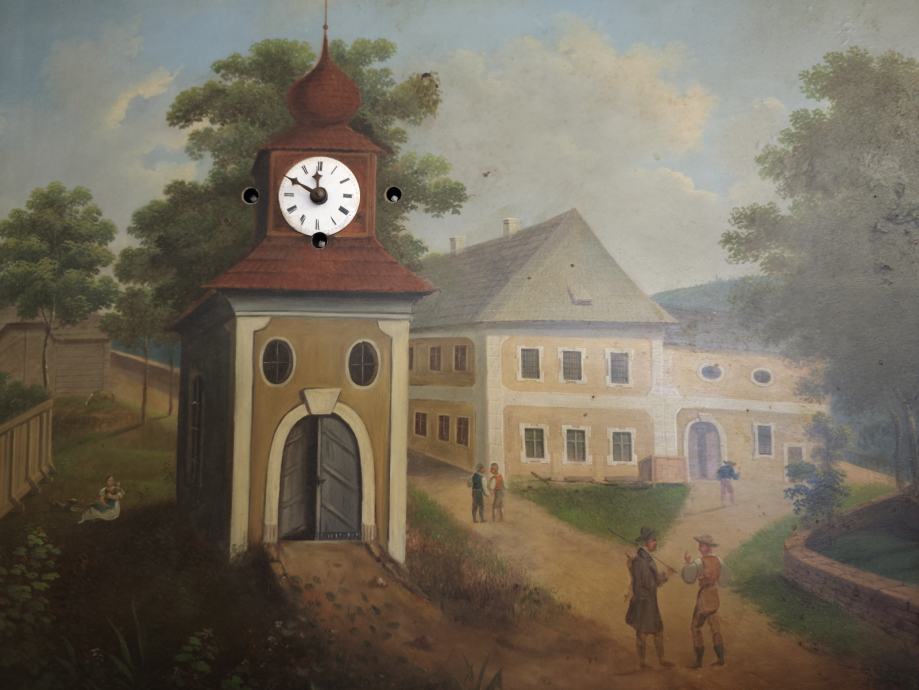 Slika z uro/ glasbena skrinja. 1830. Mehanska.65,5 x 54 cm.