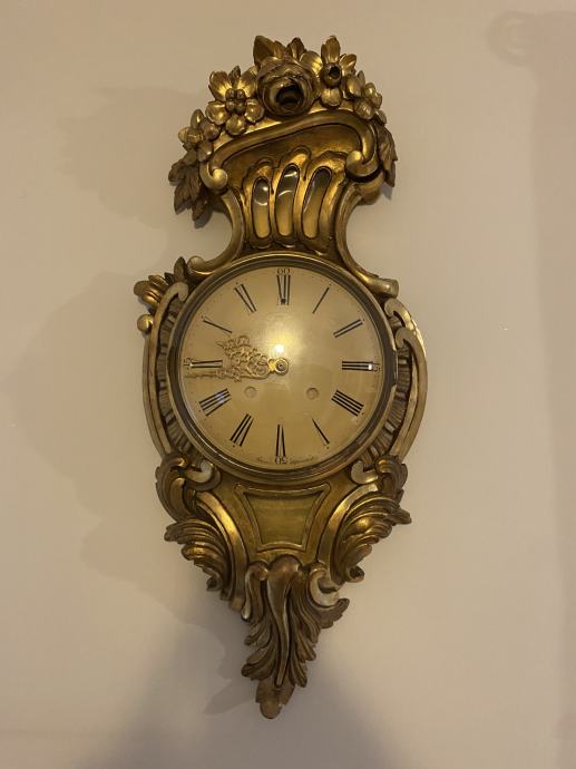 prodam leseno starinsko uro, pozlaceno reztavrirano