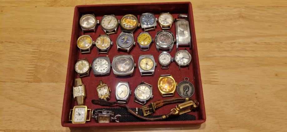 Prodam v kompletu stare ženske ure. Ure niso pregledane, večina jih dela. Cena posamezne ure 10 - 15 EUR, komplet pa 100 EUR.