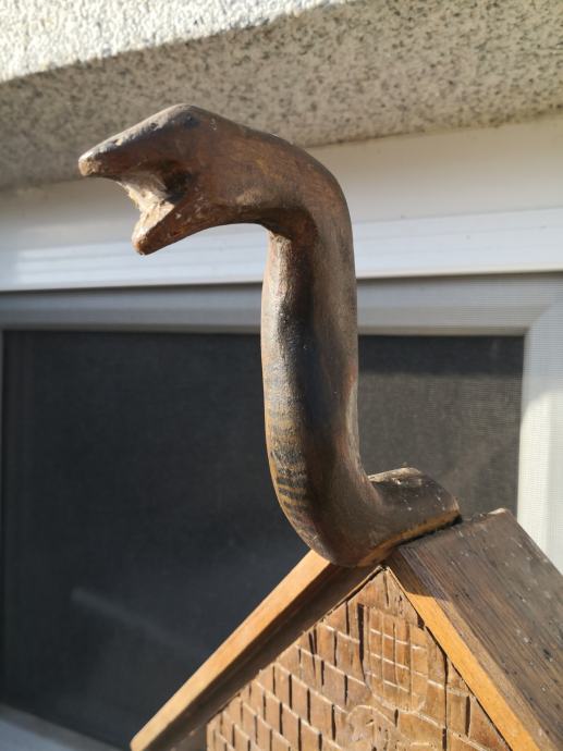 Starinska lesena ura gorenje 1991,stara rezbarijastar kip,lesen kip