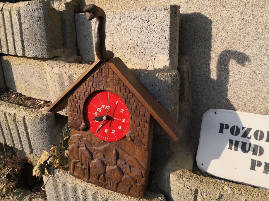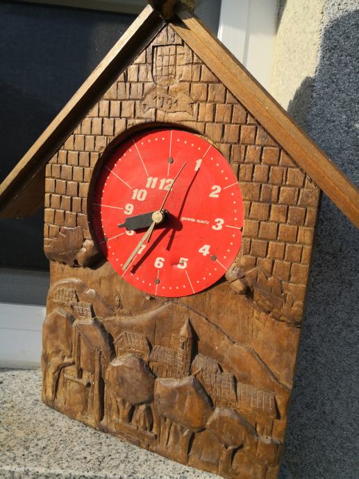 Prodaja se starinska lesena ura, rezbarija, star lesen kip, gorenje quartz 1991,lesena umetnina, doma izrezljana umetnina in doma vgrajena ura, redkost, unikat!!,