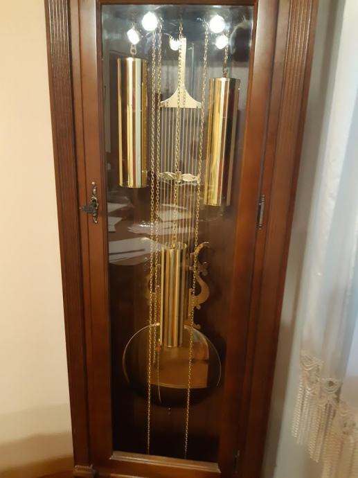 Ura ima 3 uteži, veliko lira nihalo, Westminster bitje vsakih 15 min z možnostjo izklopa.