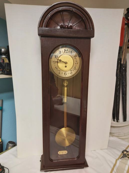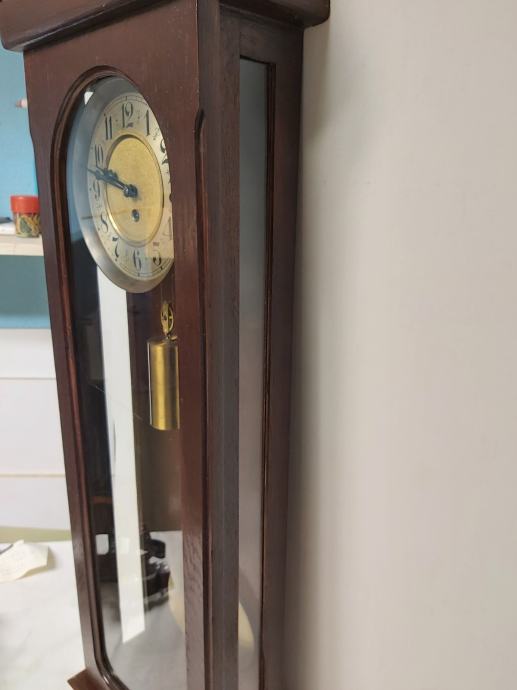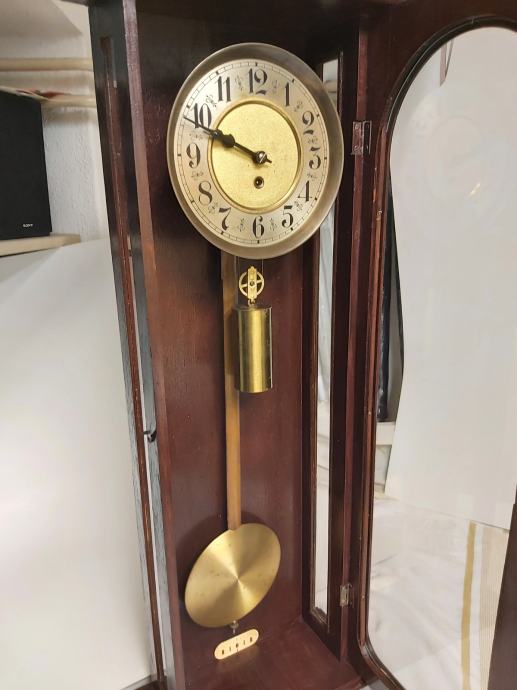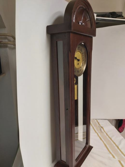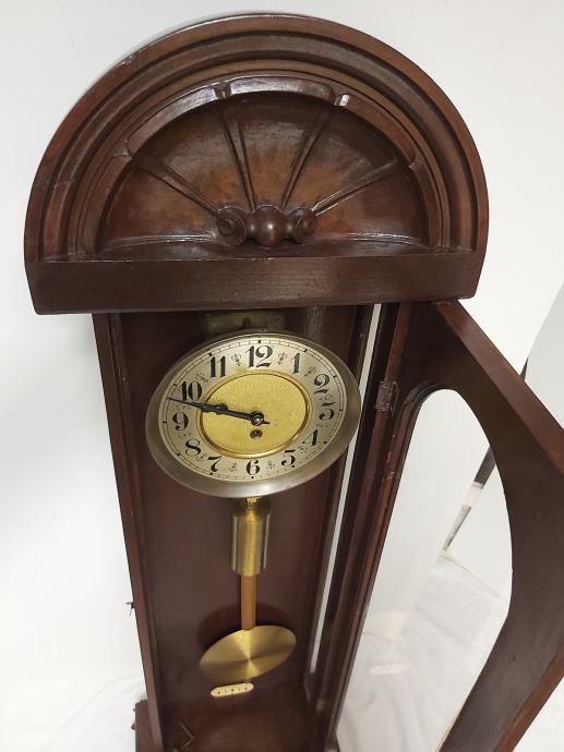 Starinska ura, original Junghans B 03 z pečati proizvajaca, samostoječa ali viseča, obnovljena v celoti, z vsemi nastavitvami, original odtis ki velja kot potrdilo oziroma certifikat je na zadnji strani ure in na zadnji strani ohišja, s ključkom za navijanje (cca 1x tedensko), u eno utežjo, letnik cca 1893, sestavljena, očiščena, podmazana in nastavljena pri urarju. Dimenzije ure, visina 99 cm, sirina 31 cm in globina 14 cm. Priložen tudi originalni certifikat. Transport je v vaši domeni ker je prezahtevena stvar za pošiljanje preko prevoznikov.