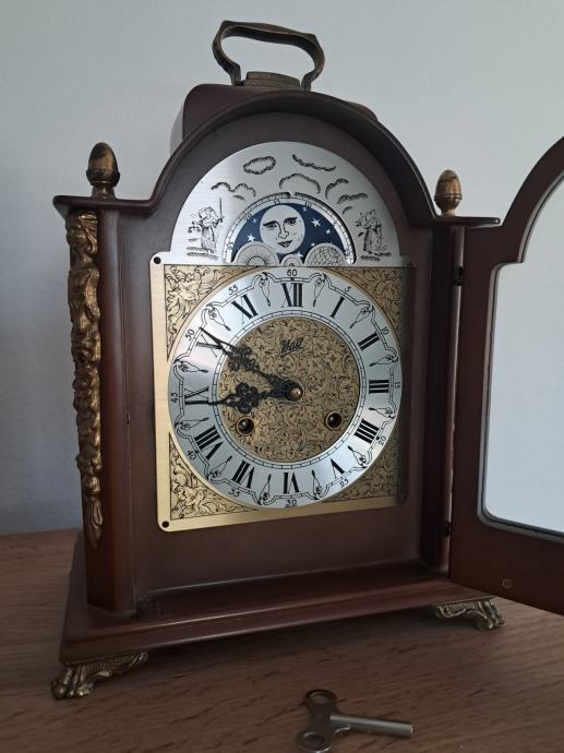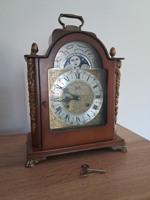 Ura bije pol in vsako polno uro. Ima tudi prikaz luninih men.