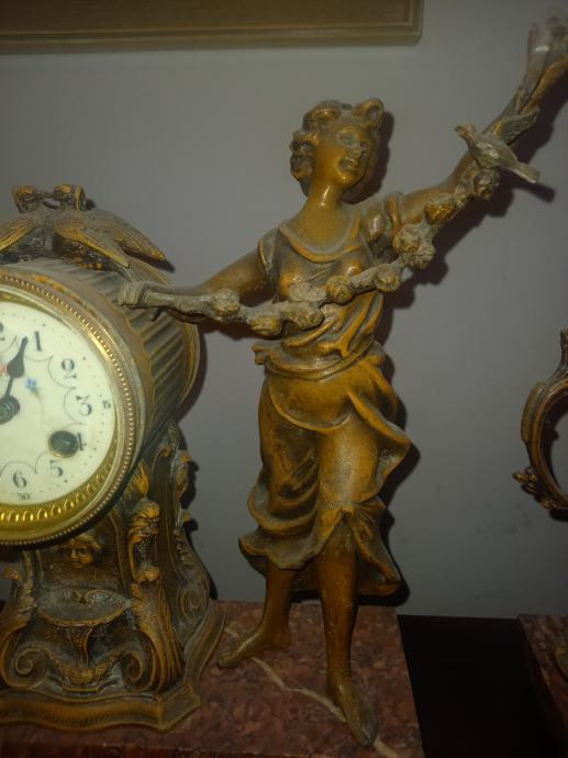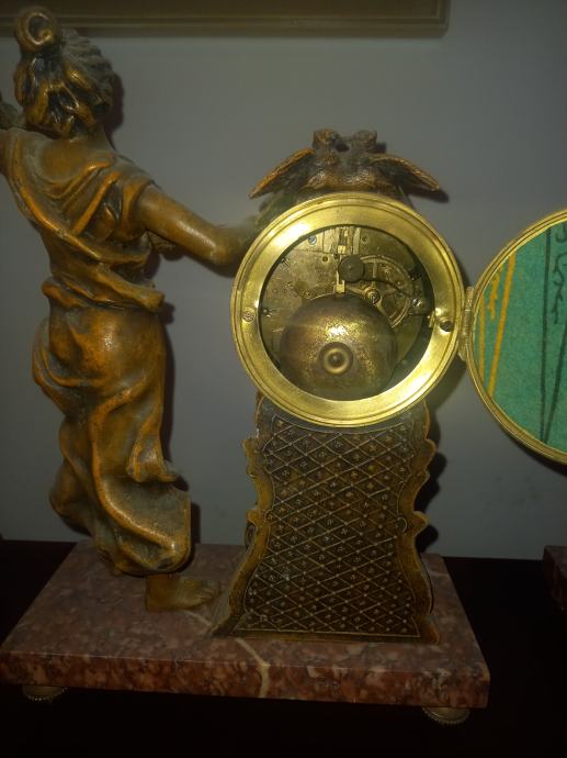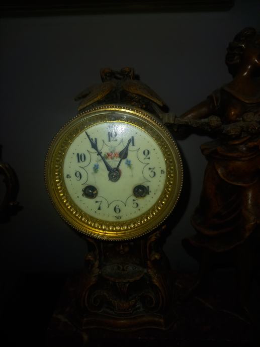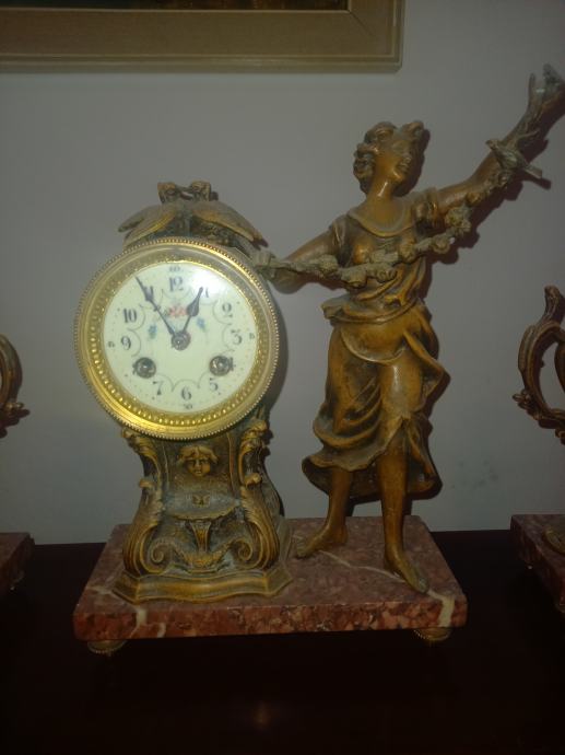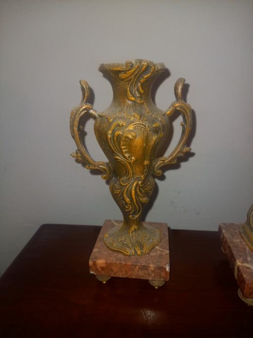 PRODAM DELUJOČO STARO FRANCOSKO KAMINSKO URO Z DVEMA VAZAMA . URA JE DOBRO OHRANJENA.BIJE OB POL IN VSAKO POLNO URO. MERE URE: VIŠINA 32 cm, MERE VAZE: VIŠINA 23 CM. TEL. 040 843 256