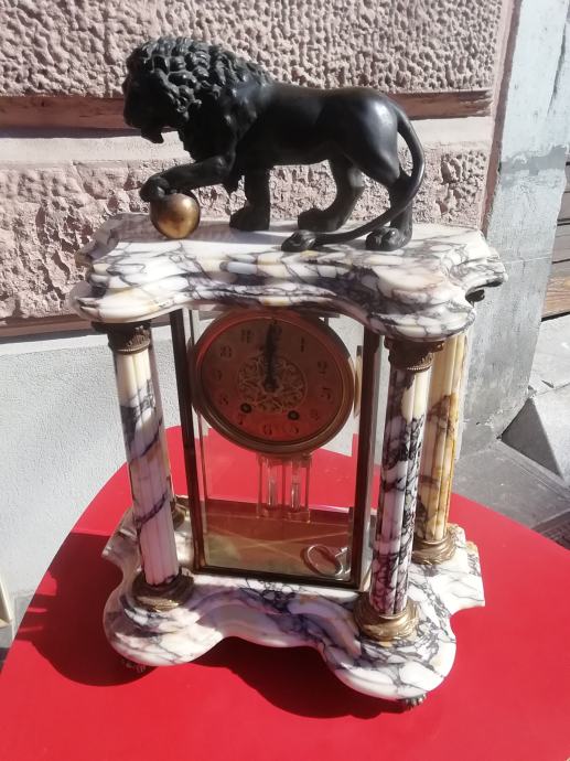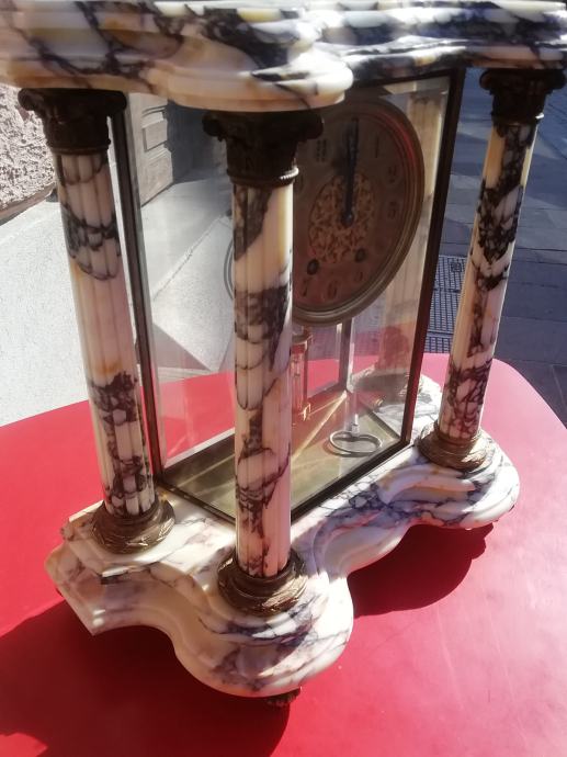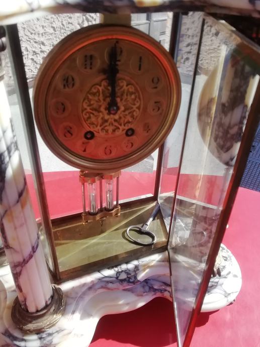 URA, zelo stara, kaminska, večja, iz marmorja, ključek, zelo lepo ohranjena(Heinrich Suttner, Laibach), dol.44cm,vis.60cm,prodam.tel.070/271-607.