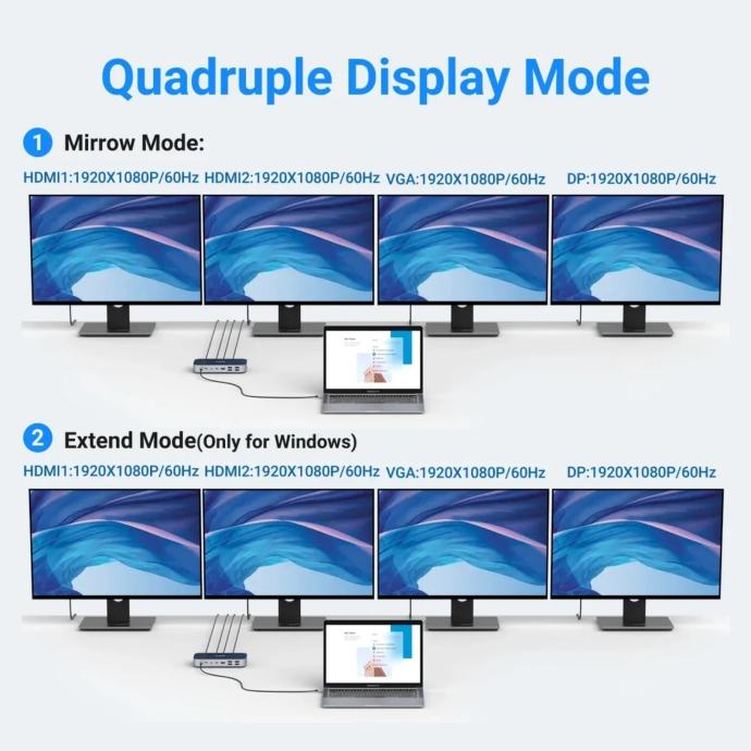 Odlično za razširitev namizja na 3 dodatne zaslone