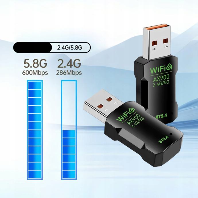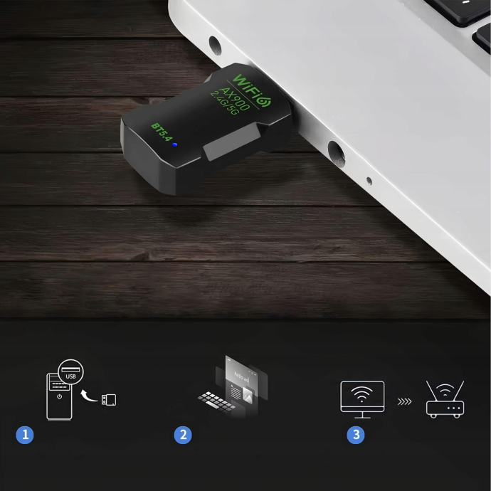 Posodobite svoj računalnik na najnovejši standard brez odpiranja ohišja! Predstavljamo vam zmogljiv 2-v-1 USB adapter, ki vašemu namiznemu ali prenosnemu računalniku zagotavlja bliskovit Wi-Fi 6 in najnaprednejši Bluetooth 5.4. Idealen je za nemoteno igranje spletnih iger, pretakanje 4K vsebin in stabilno delo od doma.