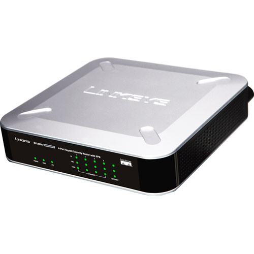 Ker se hitrosti širokopasovnih povezav povečujejo, večina vrat 10/100 nima dovolj moči, da bi podpirala višje hitrosti prenosa podatkov, zato postanejo ozko grlo v omrežju. RVS4000 10/100/1000 4-portni usmerjevalnik VPN deluje z gigabitnimi hitrostmi in tako izpolnjuje zahteve današnjih omrežij. Ima Linksysov preizkušeni požarni zid SPI z integriranim sistemom za odkrivanje in preprečevanje vdorov (IDS/IPS). Njegovo vgrajeno 4-portno popolnoma dvosmerno 10/100/1000 Ethernet stikalo lahko neposredno poveže do štiri osebne računalnike ali dodatna vozlišča in stikala. Funkcije QoS zagotavljajo dosledno kakovost govora in videa v celotnem podjetju. Poleg tega ima RVS4000 varnostni mehanizem za navidezno zasebno omrežje (VPN), ki ustvarja šifrirane tunele IPSec prek interneta. Tunel IPSec VPN omogoča oddaljenim uporabnikom doma ali na poti, da se enostavno in varno povežejo s pisarniškim omrežjem prek običajne žične ali brezžične širokopasovne povezave. Pri uporabi z drugim usmerjevalnikom RVS4000 ali drugim Linksysovim usmerjevalnikom VPN je mogoče vzpostaviti povezave med podružnicami, ki uporabnikom v oddaljeni pisarni omogočajo povezavo s poslovnim omrežjem.
