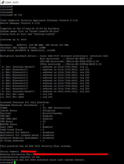 Rabljena lepo ohranjena Cisco ASA 5505, priložen napajalnik.