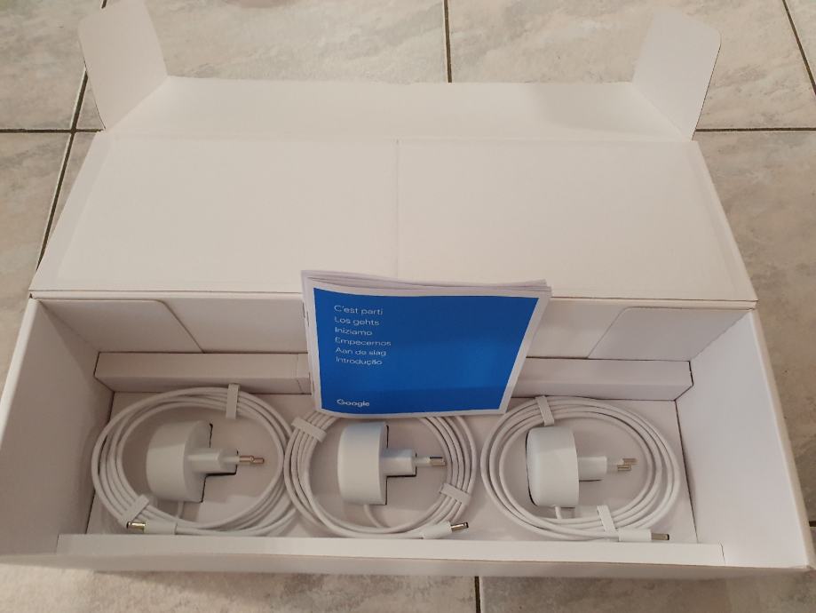Prodam paket treh Google wifi usmerjevalnikov kupljen septembra 2021 na nemškem Amazon za 193 €. Priložim račun.